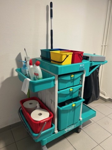 👉Mais aussi l’atelier « chariot des erreurs » pour les agents de bionettoyage ou encore « La boîte à coucou », dédié à l’hygiène des mains. Grâce à un laser bleu révélant les zones oubliées lors du lavage, cet outil sensibilise de manière visuelle et impactante à l’importance des bonnes pratiques d’hygiène.