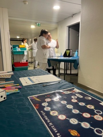 👉Comme par exemple, « un jeu de l'oie », en lien avec l'identification, la cybersécurité et la messagerie sécurisée ou encore « La chambre des erreurs », avec une immersion autour des grands enjeux de sécurité : gestion des médicaments, hémovigilance, et confidentialité des données, à travers un mannequin pédagogique.