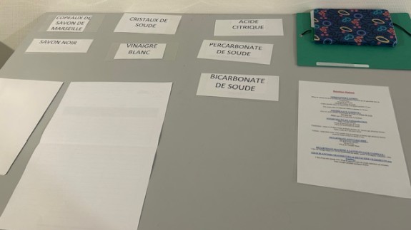 Le second atelier était consacré à la découverte de produits naturels du quotidien (bicarbonate, percarbonate de soude, citrate…) et à leurs applications possibles à domicile.